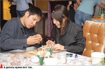 Вчера в Алматы состоялся открытый мастер-класс по прикладным видам искусства. Любой желающий мог попробовать себя в гончарном деле, бисероплетении, освоить оригами или роспись по стеклу. Притом что всевозможных курсов и мастер-классов сейчас хоть отбавляй, этот все же был особенным. Тренеры - молодые ребята, больные ДЦП и эпилепсией, давали уроки мастерства здоровым людям.