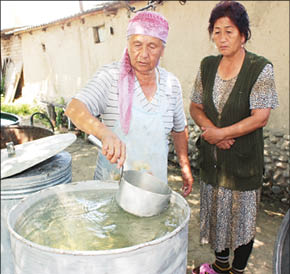 - Почти вся деревня пьет мутную, иногда червивую воду, - рассказывает Алия ДЖАМАНОВА, откручивая кран своего водопровода. Воды нет. - Видимо, опять засорился. Когда вода бежит, мы заполняем емкости, отстаиваем, кипятим и употребляем в пищу.