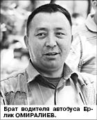 - Теперь всю вину свалят на водителя автобуса, - убежден брат виновника аварии Ерлик ОМИРАЛИЕВ. - Я сам работаю на общественном транспорте и могу сказать: в большинстве случаев в ДТП крайними делают автобусников.