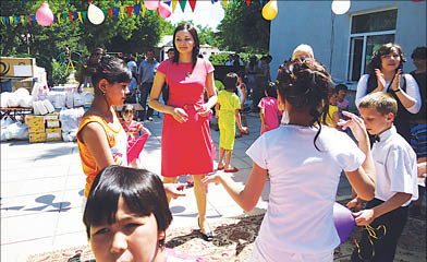 В гости к сиротам и брошенным родителями детям приехала звезда казахстанского спорта Алия ЮСУПОВА (на снимке в центре).