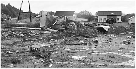 Когда спустя секунды автоматически включилось аварийное освещение, было уже поздно: самолет задел верхушки придорожного леса и пропахал поперек все шоссейное полотно. При касании с землей самолет сбил двигавшуюся по дороге легковую автомашину.