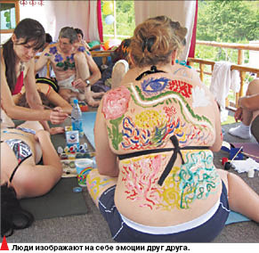 Оказывается, можно не только уйти в себя, но и нырнуть, глубоко погрузиться в свой внутренний мир. Погружение происходит при помощи методики арт-дайвинга. Как это выглядит? Собирается группа людей, которые разбиваются на пары и рисуют на телах друг друга все, что душе хочется. Один из авторов арт-дайвинга, художник Виктор ЧЕРВЯКОВ, уверяет, что это не просто уроки рисования на теле.
