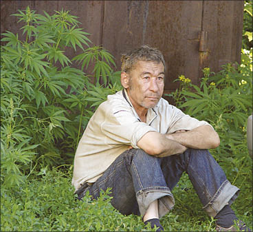 А виновник торжества, распространяя запах перегара, в это время сидел у забора в зарослях конопли под охраной полицейских из оцепления…
