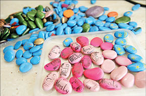 Из летних отпусков мы обязательно тащим домой камушки в качестве свидетелей нашего отдыха - обломок скалы, пляжный голыш или кусочек чего-то древнего. А вот туристы, посетившие Алматы, зачастую увозят с собой камни, расписанные Ольгой КАБАЦКОЙ (на снимке).