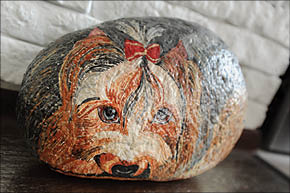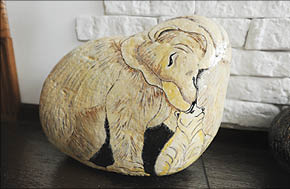 Роспись камней - занятие для женщины не из легких. Ведь валун - это вам не интеллигентный холст на мольберте. Его надо найти, высмотреть в груде камней где-то в горах, подальше от суеты, потом притащить домой, поднять на пятый этаж, водрузить на подставку, поговорить...