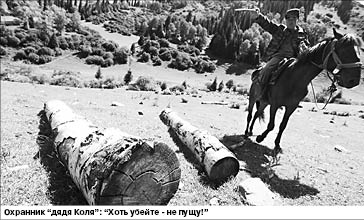 - Я просто сказал, что пока Юлдашев не прекратит заниматься тем, чем он занимается, я там работать не хочу, - рассказывает бывший лесник. - Вот мне и записали: “уволился по собственному желанию”. Я-то уволился, а по району только в последний раз 60 кубометров насчитали незаконной порубки! Мы куда только ни писали: “Нур Отан”, прокуратура, финпол! Разные комиссии приедут, шашлычок у речки поедят - и все нормально.