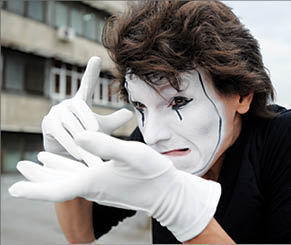 - Пантомима - путь внутренних страданий, - продолжает разговор Sinto. - У знаменитого московского мима Валерия ШЕВЧЕНКО есть такие слова: “Пластично кривляющийся человек - это еще не мим. Мим - это актер, монах, заточивший себя сознательно в пространство молчания”. На самом деле мимы - грустные люди. Меня часто спрашивают: любого ли человека можно научить пантомиме? Технике - да, но не каждому дано оживлять образы. Можно научить владеть стилистикой, но она будет неживой. Пантомима - это чарующее искусство образности. В последние несколько лет в Питере наблюдается некий ажиотаж вокруг искусства владения языком тела. Можно встретить молодых людей в гриме, костюмах, которые ничего не умеют, но называют себя мимами. Несколько лет назад друзья попросили меня провести свадьбу. Естественно, возвращался домой навеселе и увидел группу людей, “шифрующихся” под мимов. Я не удержался, вышел к этим ребятам и стал их передразнивать. В итоге зрители стали аплодировать мне, а “артисты”, смутившись, убежали. …Увы, искусство мима ценится весьма дешево. Когда я работал в театре, мне платили 300 долларов в месяц. Подрабатывать не было возможности: мы постоянно были заняты в постановках. Пришлось уйти на контракт - участвовать в спектаклях театра, время от времени приходя на репетиции. Сейчас я получаю за спектакль 700 рублей, на ваши деньги - где-то 3,5 тысячи тенге. И это еще высокая ставка. Поэтому мы работаем на улицах. За час такого интерактива платят сто долларов. Во время выступлений мне нравится пародировать качков: как они идут, широко расставив руки. Сталкивался ли я с агрессивной реакцией? Нет. Люди, когда видят себя со стороны, как правило, улыбаются. У вас в Алматы меня пригласили выступить на одном мероприятии. Во время номера замечаю: мама с малышом на руках стоит и смотрит на меня как завороженная. Я решил пообщаться с ней напрямую, но неожиданно увидел страх на лице ребенка. А мама так увлеклась творческим процессом, что не слышала, как ее ребенок плачет. Она подходила ко мне все ближе и ближе. Пришлось остановить ее, потому что малыш уже орал во весь голос…
