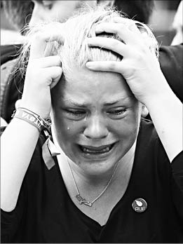 Когда Брейвик прибыл на остров, он увидел, как люди спешили к главному зданию лагеря. Некоторые шли, взявшись за руки, и плакали, пытаясь понять смысл картины разрушений в результате взрыва в Осло, которую демонстрировали с экранов телевизоров, что в настоящее время уже называют норвежским событием 9/11. У гостей на острове были свои причины испытать потрясение от событий в правительственном квартале Осло. Каждый год, насколько можно припомнить, молодежное крыло норвежской Рабочей партии собирается здесь. Основанная в 1887 году лейбористская партия является крупнейшей политической партией Норвегии, она была главной силой в стране со времен Второй мировой войны, уступая власть консервативной партии лишь на краткие периоды. В доме отдыха лейбористской партии собралось ее молодежное крыло, это были будущие руководители страны, дети из правящей элиты. К тому времени, как Брейвик подошел к главному дому, вспоминают свидетели, там уже находились около 80 человек. “Мы все собрались в главном доме, чтобы поговорить о том, что случилось в Осло”, - рассказала ежедневнику Aftenposten оставшаяся в живых 16-летняя Хана.
