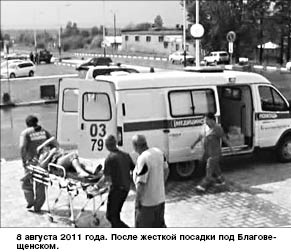 А в минувший понедельник в Благовещенске снова совершил жесткую посадку самолет Ан-24, следовавший из Иркутска в Хабаровск. На борту судна находились 36 человек, в том числе три ребенка. Пострадали 15 пассажиров и членов экипажа. Возбуждено уголовное дело. О подозреваемых по делу пока ничего не сообщается. Как сообщили в управлении МЧС России по Амурской области, все пострадавшие направлены в больницы Благовещенска.
