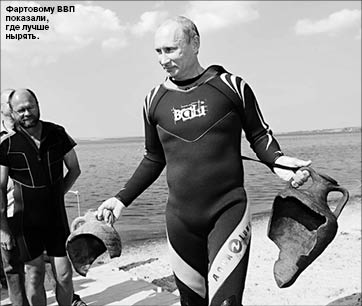 Как пишет “Коммерсантъ”, премьер-министр, поднявшись со дна залива, утверждал, что амфоры дожидались его там, в море, с VI века нашей эры. Правда, отметил: “Ребята, конечно, показали, где лучше нырять...” Когда-то глава Кабмина признавался, что он фартовый, этим и объяснял свои многочисленные удачи.