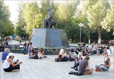 В центральном парке Семея в минувшее воскресенье прошел необычный флешмоб: молодежь решила скрасить одиночество Шакарима, устроив прямо на асфальте (!) чаепитие около его памятника.