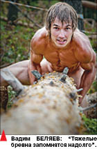 Надо сказать, что в этот день фотограф заставил модель не только купаться под холодными струями, но и балансировать на высоко лежащем стволе дерева и поднимать по несколько раз тяжелые бревна.