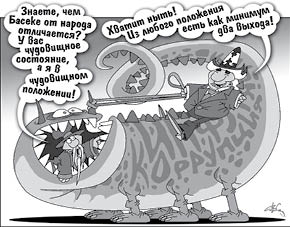 Кстати, о дырках. На последнем заседании правительства, посвященном подготовке к отопительному сезону, премьер-министр Карим МАСИМОВ обратился к акимам регионов с отеческим пожеланием “еще раз внимательно посмотреть все свои дырки”. Неделей раньше этих же акимов премьер Масимов призывал “вовремя подтянуть хвосты”. Надо полагать, что тот же аким Костанайской области Сергей КУЛАГИН, очень вовремя подтянувший хвост и с нескрываемым любопытством заглядывающий в свою дырку, представляет собой идеальный образ руководителя эпохи форсированного индустриально-инновационного развития (ФИИР).