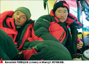 - На двоих получается чертова дюжина, - смеется Жума, как его называют друзья. - Для нас с Василием число 13 - счастливое. Совершали восхождения на горы Гашербрум I (8068 м - 13 августа 2001 г.) и Канченджанга Главная (8586 м - 13 мая 2002 г.). И в этот раз именно это число принесло удачу.