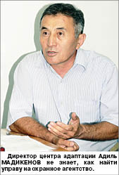 Многие постояльцы центра на все наши вопросы о житье-бытье отвечали затравленными взглядами и долгими вздохами, кроме, пожалуй, одного словоохотливого бомжа, который весело изрек: “Как живем? Если честно сказать, то сразу выгонят”. Мы попытались встретиться с директором частного охранного агентства “Сериктес дуплет” (которому центр адаптации продолжал подсоблять бюджетными деньгами) Батыром ЕСЕЕВЫМ. Увы, это оказалось невозможно. Начальник как “уехал в командировку” в первый наш приход, так и продолжает оставаться в ней по сей день - во всяком случае, так нам отвечают его секретарши. Удалось только выяснить, что до нынешней своей охранной миссии господин Есеев служил в ОП-1 ДВД области, занимался там кадровыми вопросами. Ушел на пенсию по выслуге лет.