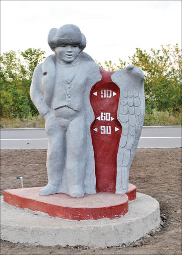 Аллею украсили работы скульпторов из разных стран, приехавших на международный форум ваятелей, проходивший летом в областном центре. Особой популярностью пользуется статуя веселого джигита, предлагающего всем желающим проверить свою вторую половинку на соответствие идеальным параметрам 90-60-90.