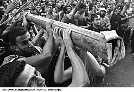 В ночь на субботу группа людей, ранее принимавших участие в антиизраильской манифестации, ворвалась в здание посольства Израиля в Каире. Несколько сотрудников миссии были вынуждены забаррикадироваться в помещениях посольства, пока их не вызволил египетский спецназ.