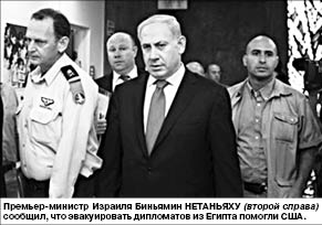 После субботнего разгрома израильского посольства переходное военное правительство Египта пообещало обеспечить защиту всех дипломатических представительств в стране. Участники нападения (число задержанных достигло 130 человек) на израильскую миссию будут преданы чрезвычайному суду государственной безопасности, говорится в заявлении, зачитанном по египетскому государственному телевидению. В свою очередь израильский премьер-министр Биньямин НЕТАНЬЯХУ заявил: “Мы работаем с египетским правительством ради возвращения нашего посла в Каир в скором времени. Я хочу удостовериться в том, что необходимые для него меры безопасности будут надежными”.