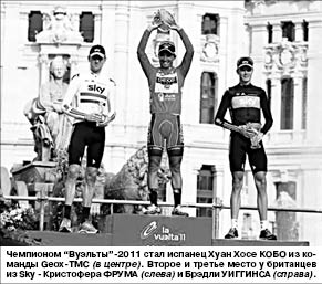 В минувшее воскресенье в Мадриде финишировала заключительная гонка серии гранд-тур этого года. Она завершилась неожиданной победой местного велопрофи Хуана Хосе КОБО из Geox-TMC. Лучшим из казахстанской “Астаны” стал хорват Роберт КИСЕРЛОВСКИ: он занял в общем зачете 18-е место, отстав от лидера на 13 минут 27 секунд. В общекомандном первенстве наша велоконюшня стала седьмой. В свой актив “Астана” может записать второе место на предпоследнем - 20-м - этапе итальянца Энрико ГАСПАРОТТО, а также победу на 18-м этапе его земляка Франческо ГАВАЦЦИ из Lampre, который со следующего сезона будет защищать цвета нашей команды.