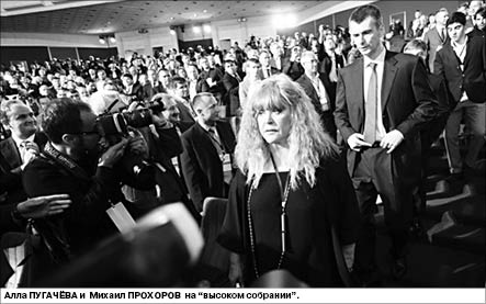 Алла ПУГАЧЕВА, которая также стала участницей встречи в РАН, сказала со сцены: “Я счастлива, что Михаил Прохоров одинаково со мной мыслит. Я готова во всем его поддержать. Он ставит человека целью государственной власти, а не средством. И наверное, кто-то наверху, да не кто-то, а тот же Владислав Юрьевич Сурков, сошел с ума. Я-то по наивности думала, что мы создаем такое дело, которое поможет власти опомниться, что-то увидеть. Может, до них не доносятся голоса праведных людей, чистых и свободных? И что я услышала в ответ? “Ну если вы считаете, что мы вам не помогали, то мы будем вам мешать”. Слушайте, я когда-то это слышала”.