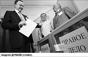 То, что съезд альтернативный прохоровскому в Центре международной торговли окажется легитимным, не вызывало сомнений: в зале присутствовала член ЦИК Татьяна ВОРОНОВА и представительница Минюста, не назвавшая журналистам своего имени. Под знамена главы мандатной комиссии “Правого дела” Андрея БОГДАНОВА, одного из инициаторов смещения Михаила Прохорова, собралось 75 делегатов из 69 региональных отделений, что обеспечило кворум. Собравшиеся единогласно утвердили поправки в партийный устав, избрали федеральный политсовет и утвердили главой исполкома Андрея ДУНАЕВА.