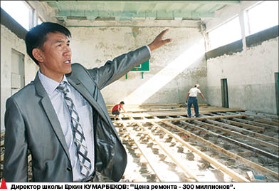 - Министр образования Бакытжан Жумагулов родом из нашего Капала, учился в нашей школе, - рассказывает директор школы Еркин КУМАРБЕКОВ. - В апреле этого года он приехал в гости к нам. Осмотрел все классы и пообещал помочь с ремонтом. Примерная стоимость работ - около 300 млн. тенге. Сюда включены покупка и установка оборудования, замена школьного инвентаря. Но ремонт затянулся - видимо, возникли какие-то проблемы… Теперь нам пообещали завершить объект только в конце ноября!