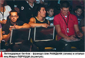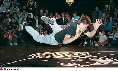Шестнадцать би-боев (так называют танцоров брейк-данса. - Н. П.) боролись за звание лучшего среди лучших. Турнир, проходивший по системе “один на один”, напоминал боксерские поединки. Танцоры выходили на площадку по двое, и проигравший по итогам двух “раундов” выбывал из конкурса.