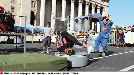 Не обошлось и без травм. Один из паркуристов начал делать трюк “бочка”, но упал, разбил голову и повредил плечо. Парня тут же госпитализировали на “скорой”. Семнадцатилетнему алматинцу Николаю СЕНЧЕНКО тоже не повезло: после переднего сальто при приземлении он получил разрыв ткани на ноге.