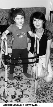 - В Китае есть военный госпиталь, - говорит мать. - Там лечат таких детишек. Я сама видела, как малыши уезжали туда в инвалидных колясках, а возвращались на своих ножках. У нас с Мольдир есть года два, когда ее еще можно поставить на ноги, потом она подрастет, и будет поздно. Поэтому я решила: в лепешку расшибусь, а ребенка в этом госпитале пролечу!