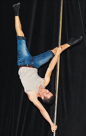 Еще одно отличие конкурса - полное отсутствие каблуков. Все девушки выступали только в спортивной обуви. А главным украшением вечера в показательных номерах стал... мужчина. Вениамин ЛИПАТНИКОВ, не отличаясь богатырским телосложением, словно порхал вокруг шеста и недвусмысленно склонял сомневающихся к занятиям спортом.