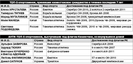 Насколько Рустем сумеет прижиться у нас и будет ли он, защищая честь своей новой родины, показывать высокие результаты, покажет время. Есть немало атлетов, которые приняли казахстанское гражданство и продолжили спортивные традиции нашей страны (см. таблицу). Но есть и другие, кто, получив бирюзовый паспорт, “срубил бабло” и - благополучно отбыл восвояси. А ведь это немалые деньги, которые могли бы пойти, например, на развитие детско-юношеского спорта. Нужны ли Казахстану натурализованные спортсмены? С этим вопросом мы обратились к вице-президенту Национального олимпийского комитета Павлу НОВИКОВУ, который является к тому же и главой Федерации легкой атлетики РК, где натурализация никогда не практиковалась.
