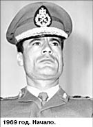В бурном 1969 году, когда Муамар Каддафи совершил бескровный переворот в Ливии, да и позднее, в 1979 году, его знали как красивого, харизматичного молодого офицера. Каддафи был страстным поклонником египетского лидера Гамаля НАСЕРА (он даже решил занять такой же армейский чин, что и Насер, и повысил самого себя в звании от капитана до полковника). Придя к власти, он также, как и Насер, первым делом занялся несправедливым экономическим наследием колониализма.