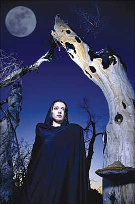 - Например, однажды мы приехали с ночевкой в туранговую рощу - шашлык взяли, палатки поставили. А вокруг деревья сказочной красоты - то сухие, то полусожженные, покрытые грибами, одним словом, не хватает только, чтобы из чащи вышел леший. Вот я и решил устроить спонтанную фотосессию, благо в багажнике автомобиля всегда есть куски материи и прочие атрибуты для превращений.