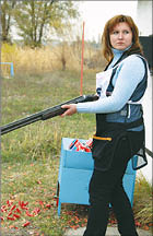 - Попала! - радостно произносит Оксана. - Я первый раз стреляю по тарелочкам и второй раз в жизни держу ружье в руках.