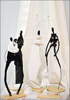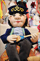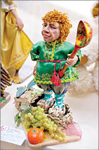 На этой выставке были представлены, пожалуй, все техники: и фигурки из проволоки от студентов творческой мастерской ТУРЕХАНОВА, и полуголые красотки в оборках - серия “Мулен Руж” от Дианы СОЛОВЬЕВОЙ, и настоящие скульптурки от Светланы ПЛОТНИКОВОЙ. Естественно, присутствуют работы мэтра кукольного искусства Людмилы КУЖЕЛЬ. А вот Наталья ЛЕПИХИНА, хоть и начала мастерить пестрый народец лишь два года назад, уже успела стать своим человеком в российской кукольной тусовке. Кстати, почти все ее изделия на выставке появились с пометкой “Из частной коллекции”. Тут все по высшему разряду: бархат под старину, роскошные костюмы и традиционная кукольная грусть в глазах.