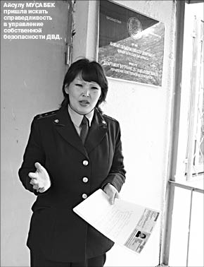 Конфликт этот, по словам потерпевшей Айсулу Мусабек, вызревал еще с июня, когда она получила звание капитана.