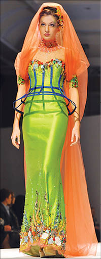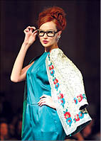 Но лучше всего об уровне Недели свидетельствуют ее дебютанты. Ерлан ЖОЛДАСБЕКОВ, один из своеобразнейших дизайнеров Алматы, до сих пор умудрялся избегать официального подиума. Он демонстрировал свои невероятные, пронизанные Востоком коллекции только по случаю, для “своих”. Ерлан ослепил присутствующих инкрустациями из осколков зеркал, тонкой смесью Азии и мотивов хиппи, женственностью и тонкостью.