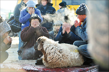 Правоверные Астаны с утра отправились на рынок неподалеку от села Косшы, чтобы принести в жертву барана. В столице из уст в уста передавалась информация, что трасса на Косшы усилена нарядами полиции, что за главной столичной мечетью “Нур Астана” наблюдают десятки, если не сотни полицейских, большинство из которых в штатском, дабы не допустить неприятных сюрпризов от салафитов. На деле же все оказалось иначе. Дорога на Косшы была пустынна, возле рынка дежурили два патрульных автомобиля дорожной полиции, а у “Нур Астаны” лениво прохаживалась парочка полицейских.