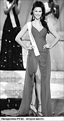 Второе место завоевала представительница Филиппин Гвендолина РУЭС, а третье - красавица из Пуэрто-Рико Аманда Виктория ПЕРЕС.