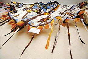 - Кем я только не работала: художником-оформителем, дизайнером, художником по тканям на алматинском АХБК, - продолжает разговор мастер. - Потом увлеклась войлоком и стала экспериментировать. И чем дальше углубляюсь в эту область, тем большие просторы открывает передо мной этот уникальный материал. Во время работы мягкие шерстинки нежно обнимают руки, ложатся ровно и послушно, я не устаю от валяния, и результат всегда радует.