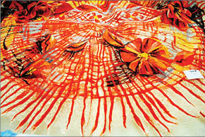 - На одной из выставок как образец я вывесила шарф моей подруги, который она проносила год. Это была одна из первых моих вещей. Я его хорошо отгладила и показывала посетителям как наглядный пример, что будет с вашей вещью через год. Подошла женщина-индианка, посмотрела все работы и показала пальцем на этот шарф. Я подала и стала объяснять, что это образец. Не дослушав меня, женщина накинула шарф и пошла в нем. Ее сопровождали две девушки, которые сказали, что заплатят любые деньги. Пришлось согласиться.