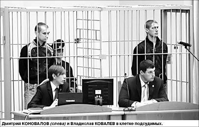 В минувший понедельник заместитель генерального прокурора Белоруссии Алексей СТУК, представляющий гособвинение в деле о теракте в минском метро 11 апреля 2011 года, взрывах в Минске в 2008 году и в Витебске в 2005-м, попросил приговорить двух предполагаемых исполнителей теракта - 25-летних жителей Витебска Дмитрия КОНОВАЛОВА и Владислава КОВАЛЕВА - к смертной казни. “Виновность Коновалова и Ковалева подтверждается исследованными в суде доказательствами”, - заявил представитель гособвинения. Коновалова обвиняют по более чем 30 эпизодам, в числе которых терроризм и “особо злостное хулиганство”. Ковалеву вменяется в вину участие в 15 эпизодах противоправных деяний. Оба подсудимых работали на Витебском заводе тракторных запчастей: один токарем, другой слесарем.