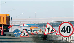 Все нынешнее лето жители и гости шахтерской столицы вынуждены были наматывать километры по объездной дороге, чтобы попасть в Пришахтинск, Темиртау и Астану. Чего не сделаешь ради возможности в будущем ездить по хорошей дороге! Однако счастье длилось недолго. Не прошло и нескольких месяцев, как фрагмент отремонтированного моста обрушился. Благо неприятность эта случилась “своевременно” - уже после недавнего визита в регион главы государства.