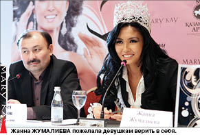 На прошедшей пресс-конференции “Мисс Казахстан-2010”, “Топ-модель мира-2011” Жанна ЖУМАЛИЕВА пожелала девушкам удачи, верить в себя и не бояться трудностей, а также поблагодарила казахстанцев за поддержку на международном конкурсе.