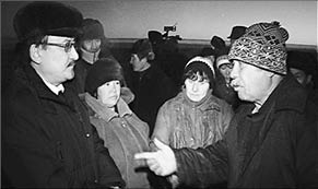 Вечером 8 декабря около 60 работников птицефабрики перекрыли трассу Кызылжар - Аксу. Около часа вынуждены были ждать окончания акции протеста пассажиры трех междугородних автобусов, а также более двадцати легковых и грузовых автомобилей. Только после этого руководством ТОО “Кызылжар Агро” наконец всерьез заинтересовались правоохранительные органы. Прокурор Аксу Абиль КОЖАХМЕТОВ (на снимке - слева) сообщил: по факту нарушения трудового законодательства, выразившегося в задолженности по заработной плате, заведено уголовное дело.