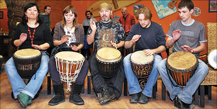 - Наша школа “Тенгри Нур” существует два года, и я могу с гордостью сказать, что это первая в Казахстане школа африканских барабанов, - сказал Бауржан, ее руководитель. - Еще два года назад такой этнической тусовки в Алматы не было, а теперь многие увлеклись африканской музыкой и танцами.