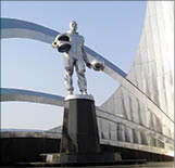 В Караганде в четверг на площади Гагарина торжественно открыли памятник Космонавтике (на снимке), строительство которого местные активисты добивались более 5 лет.