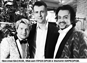 За главным блондином российского шоубиза подтянулись модельер Валентин ЮДАШКИН с супругой, юморист Владимир ВИНОКУР с семьей, Галина ВОЛЧЕК, певец Александр БУЙНОВ и Кристина ОРБАКАЙТЕ с мужем и сыновьями Дени и Никитой. Приехал и экс-супруг Примадонны Филипп Киркоров. А вот Дмитрий Медведев, которого ожидали, в ресторане так и не появился. Зато пришел олигарх Михаил ПРОХОРОВ, объявивший на днях о своем решении баллотироваться в президенты России.