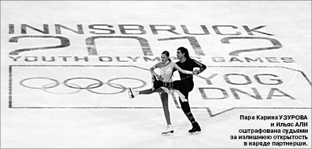 Юные казахстанские спортсмены отметились в Инсбруке не только своими хорошими выступлениями. Как сообщил официальный сайт Международного союза конькобежцев (ISU), перспективная танцевальная пара из Казахстана Карина УЗУРОВА и Ильяс АЛИ была оштрафована судьями за излишнюю открытость в нарядах партнерши как в короткой, так и в произвольной программах.