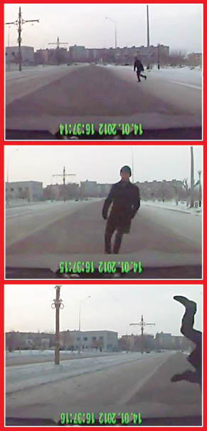 Судя по тому, что запечатлел регистратор, события происходили вечером 14 января. Водитель машины, двигаясь по одному из центральных проспектов, заметил молодого человека, который, стоя на остановке общественного транспорта, вдруг выбежал на проезжую часть и опрокинулся на капот автомобиля. На записи четко видно, что парень сделал это преднамеренно. Благо, водитель правильно оценил ситуацию и сбросил скорость. Но даже при этом молодой человек сделал в воздухе сальто, прежде чем грохнуться на проезжую часть.